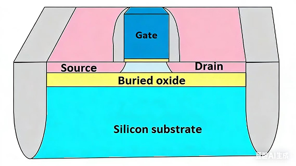 Anane lapisan insulasi SiO2 kanthi efektif ngisolasi transistor saka substrat silikon sing ndasari. Isolasi iki nyuda arus sing ora dikarepake saka lapisan aktif menyang substrat. Saiki bocor mundhak kanthi suhu, saéngga bisa ningkatake linuwih chip ing lingkungan suhu dhuwur.