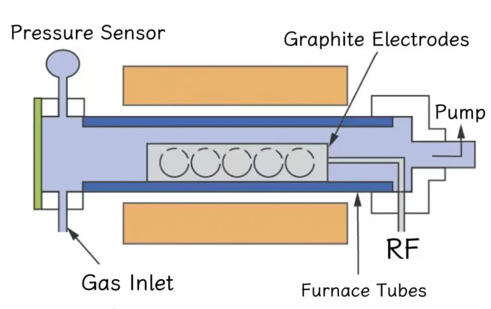 Proses reaksi LPCVD biasane ditindakake ing kamar reaksi tekanan rendah, biasane kanthi tekanan 1-10 Torr. Sawise wafer digawe panas nganti sawetara suhu sing cocok kanggo reaksi deposisi, prekursor gas dilebokake menyang kamar reaksi kanggo deposisi. Gas reaktif nyebar menyang permukaan wafer lan banjur ngalami reaksi kimia ing permukaan wafer ing kondisi suhu dhuwur kanggo mbentuk celengan padhet (film tipis).
